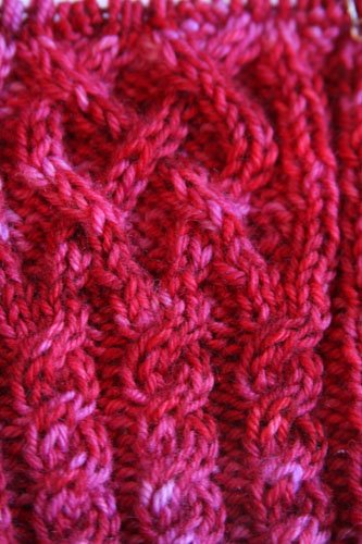 And now for a taste of my current project…Tosh Worsted in Cherry. YUM. Delish and plumps beautifully for cables. Varigation does not hide them in the least.