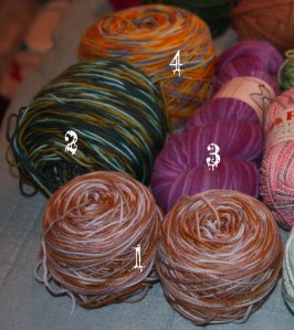 3. Dyet Yarns in a colorway I can’t remember and I realized this is not on my Rav stash page (1 skein), not sure what I’ll do with it quite yet. Socks? Mitts? Something else?