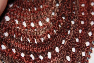 It’s from the new Fall Vogue Knitting: the Eyelet Cap by Cathy Carron. I can not wait to block it because it is mind-blowingly pretty when you can see the color changes in the MamaBlue “Pit.”