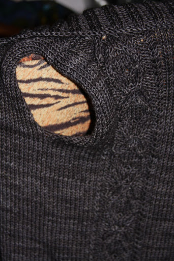 And my Heather Hoodie Vest. I am so close to finishing this one, but after being knocked on my back for two days, it has been hard to get back into and finish. (It’s been hard to get back into knitting, period.) I could not get a decent photo of this one, so the peek of the sleeve and collar will have to do. This was the best representation of the color I could get with the best definition of the cable. It just pops out in person, but in photos it may as well not be there.