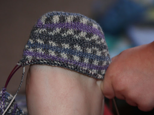 Ah, the ugly socks. There hasn’t been a lot of progress made on these since they were last blogged. I’ve knit about 6 rows–two at a time for 12 total rounds–since. I’m not in love with them and other sock patterns keep sweetly singing to me. I want to finish these first and I can in relatively short order, if I just focus and DO them rather then thinking about other knits I’d rather be working on. Starting last night, I now have a goal of knitting on them for at least an hour every night until they’re finished. I’m not sure if I can stick to that, but if I can, I should have socks in the next two weeks.