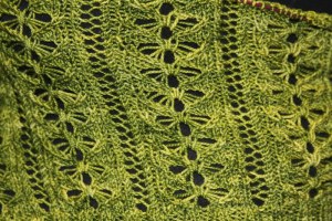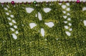 After 3 years of knitting, I found out that I SSK incorrectly: who knew? When by itself without a decrease on the purl side, my SSK always looked as it should and pulls the stitches the correct way, but put a decrease on the wrong side of the fabric and SURPRISE! (The bottom two lace repeats have the incorrect stitch in them, but it’s corrected after that. Susan asked on my last post if I thought it would block out, and I can safely answer, “no.” But even if messy, the decreases pull the correct direction and it doesn’t affect the overall look too much, so it really doesn’t bother me. I tend to like keeping some imperfections in my knits as a visual reminder of what I learned on the project.)