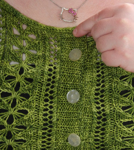 GreenRayProd on Etsy. Jodi has some fabulous vintage buttons in her shop and always includes interesting information about them. Imagine my surprise when I saw these had been tossed in as a bonus. And how perfect they were for this sweater!