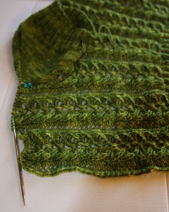 I’m making progress on my Honeybee, slowly but surely. The very short sleeve is attached to the body and I’ve finished the underarm decreases. Today, I set up to start the rest of the arm. With any luck, I’ll finish this up sometime, but I may take a short break to focus on other things and rally my enthusiasm again. For whatever reason, I have never been able to get into this sweater: for a cropped, short sleeve thing, it is taking forever to knit.