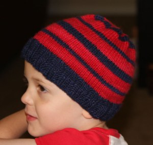 He wanted a red and blue striped hat, and I already had the blue–frogged some of his sweater from last winter that he outgrew, so I ordered up a skein of red Malabrigo to match and got to work. I used US size 8s and cast on 84 stitches. Nothing fancy. Since this hat used so little yarn–less then 1/4 skein of each color, I’m going to knit him an equally simple ribbed cowl. I’m debating if I’ll make it perfectly matching or not.