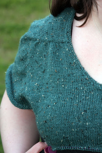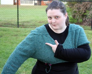 In the past week, I’ve managed to knit double the yardage I already finished on this sweater. It’s coming along quickly now that I’m able to try it on and confirm that it’s OK. Knitters who swatch and then knit without ever trying something on confuse me a lot. I don’t know if I’ll ever “get” that mentality. Maybe I take for granted the fact that my body requires so many different pattern sizes to make something fit that I have to try all of my sweaters on and make sure they’re working. I can never just Trust The Swatch.