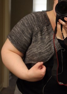 Even though the sweater is wide enough to not burst out of it, I’m still busty enough that the front is riding much higher than the back of the sweater. Once I block the sweater and the upper garter ridges relax, it will help with the problem. I know that’s partially what is going on right now and why it’s riding up. I’m seriously considering and debating adding darts to the front sides to give them a bit of extra length.