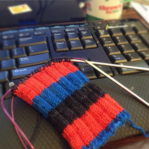 I have bound off the socks I showed you all for The Boy and am now stuck in the place of not knowing what to cast on next. For now, I’m less-than-half-heartedly crocheting a toy out of the leftovers from the socks–a part of me wants to have a small stash of already made toys to pick from for times when we’re invited to parties out of the blue–but I’m getting very little done on it because honestly, I do not really want to be working on this. My ♥ isn’t really in toys at the moment. It wants to knit something for me. Preferably in a yarn heavier than light fingering-to-fingering weight.