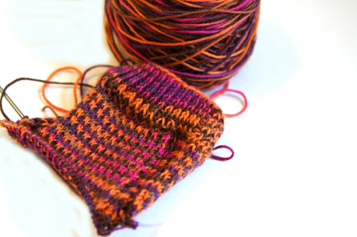 With the cooler weather has come a new-found enthusiasm for knitting. Crazy how not having sweaty hands will bring the joy back into it. I cast these on two days ago, and I’m already finished with the leg for both socks. Now onto the heel flaps and gussets!
