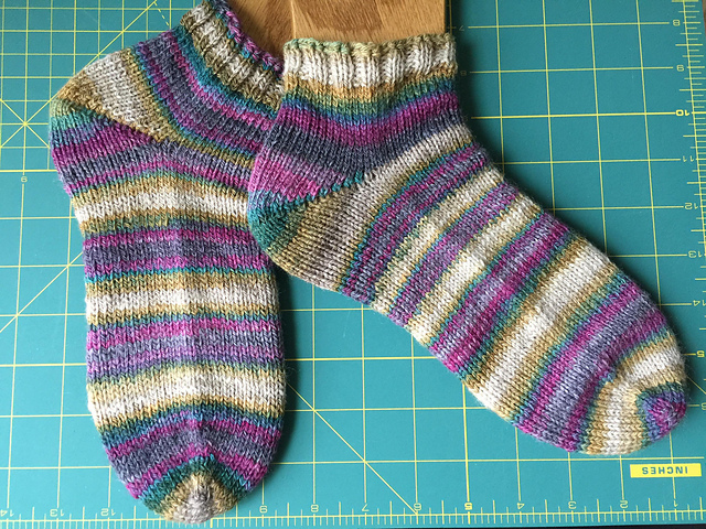 It turns out my yardage was a bit harder-earned in May, but I still had a pretty impressive number given that almost all of my knitting was fingering weight yarn held single this time around! I also knit maybe 1/4 as much this last month; I was more interested in reading and messing around on some of my game apps on my phone. Like many other places in the US, our weather decided to jump from February straight into mid-July, and the summer heat sucks my knitting mojo right out of me. (My lowest yardage months tend to be June through September, when I focus mainly on knitting socks or maybe a single shawl while I work on other things like cross-stitch, sewing, or spinning.) Given we’re only 5 months into 2018 and I’m already to 80.3% of my 12,000 yard goal for the year, this is perfectly fine. During the month I managed to work on another blanket square, knit one pair of shortie socks plus start another pair, and I knit about 1/3 of a fingering weight Boxy sweater (flat to seam, so I’m purling all the stitches in this project). It was a good month for knits!
